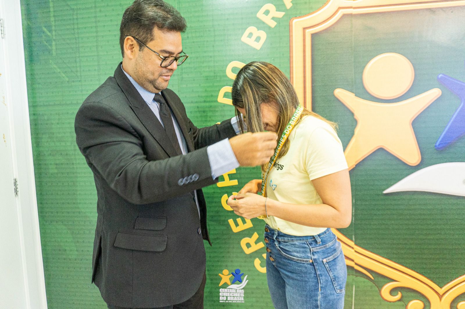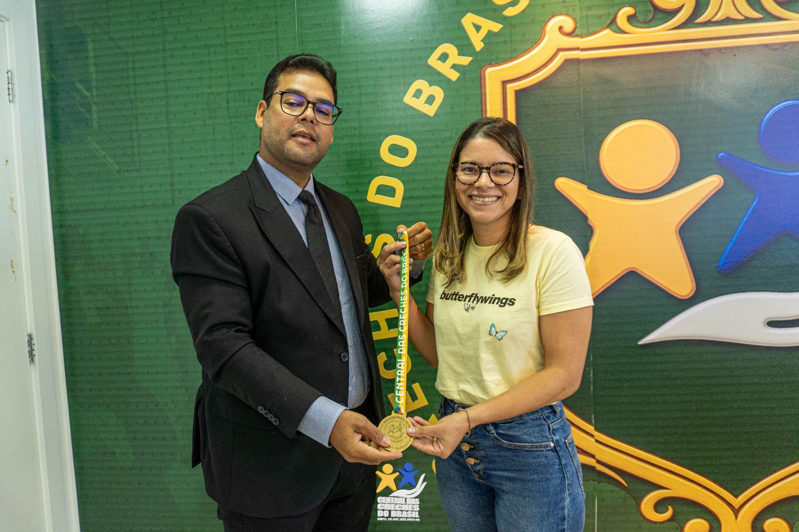 Além do título, Simone recebeu também a Medalha de Honra, símbolo da dedicação, compromisso e excelência de quem trabalha incansavelmente pela primeira infância no Brasil. A medalha representa o respeito, a gratidão e a admiração da Central das Creches por seu trabalho técnico, humanizado e profundamente transformador.