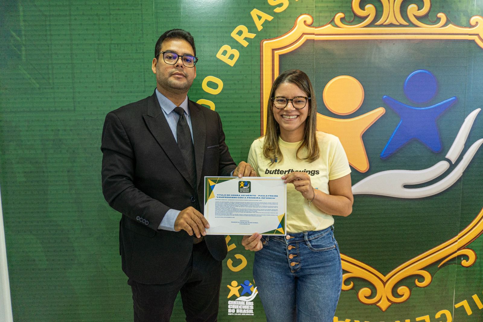 Simone Café foi homenageada com o Título de Mérito Humano “Paulo Freire” – Compromisso com a Primeira Infância, uma das mais altas distinções concedidas pela instituição. A honraria reconhece profissionais que dedicam sua vida à educação, à justiça social e ao desenvolvimento integral das crianças.