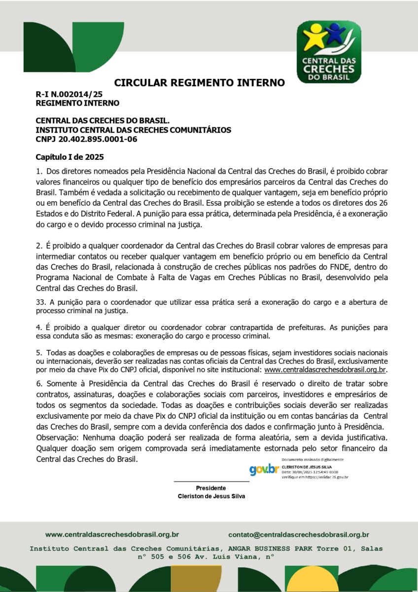 Central das Creches do Brasil, sempre com a devida conferência dos dados e confirmação junto à