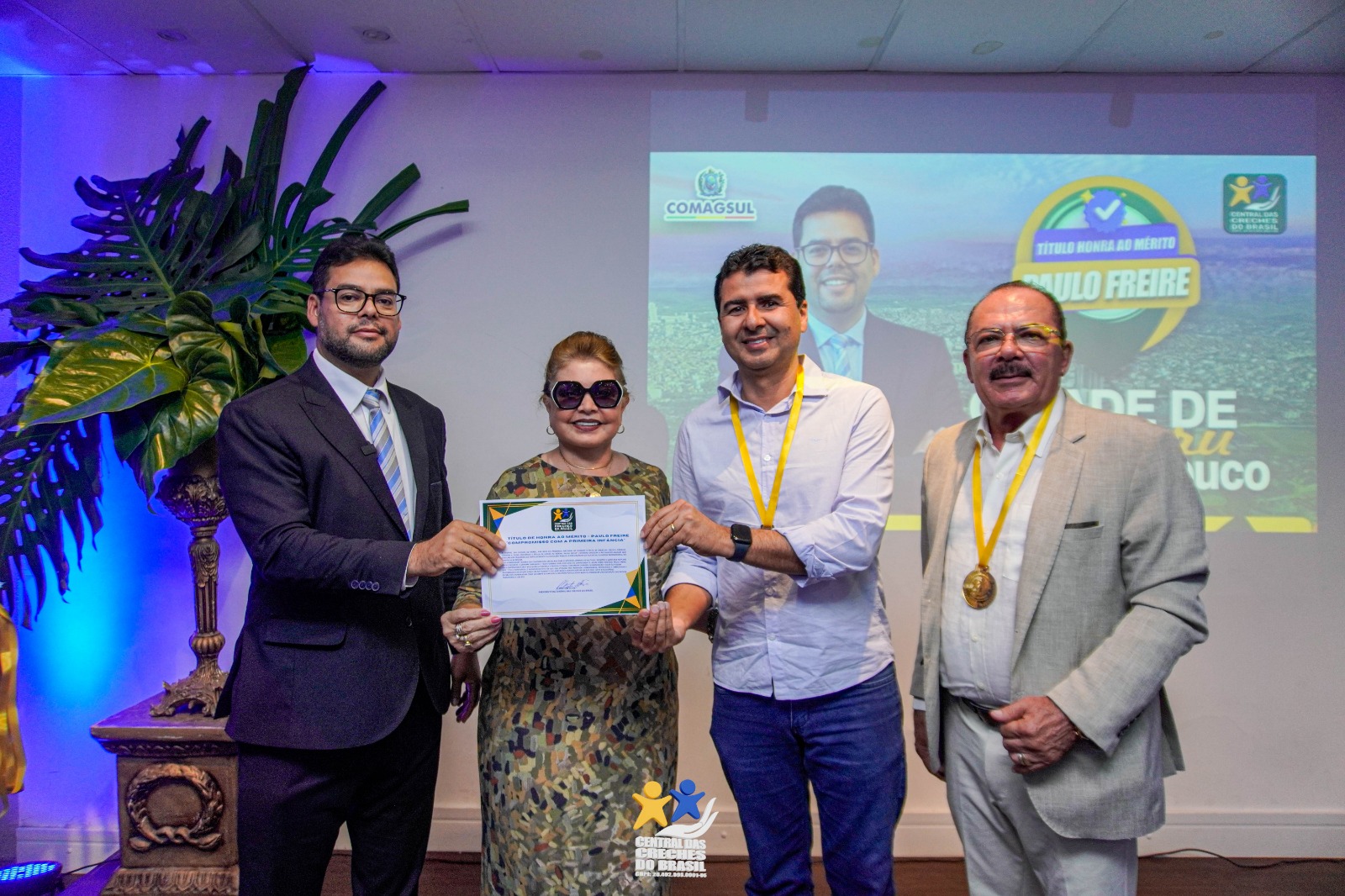 “Receber este título é uma honra enorme, porque representa nosso compromisso com as crianças do Agreste e de todo Pernambuco. E essa alegria é ainda maior porque, no dia 04, teremos a entrega da Ordem de Serviço para a construção de uma nova creche em nossa cidade, reforçando esse avanço.”